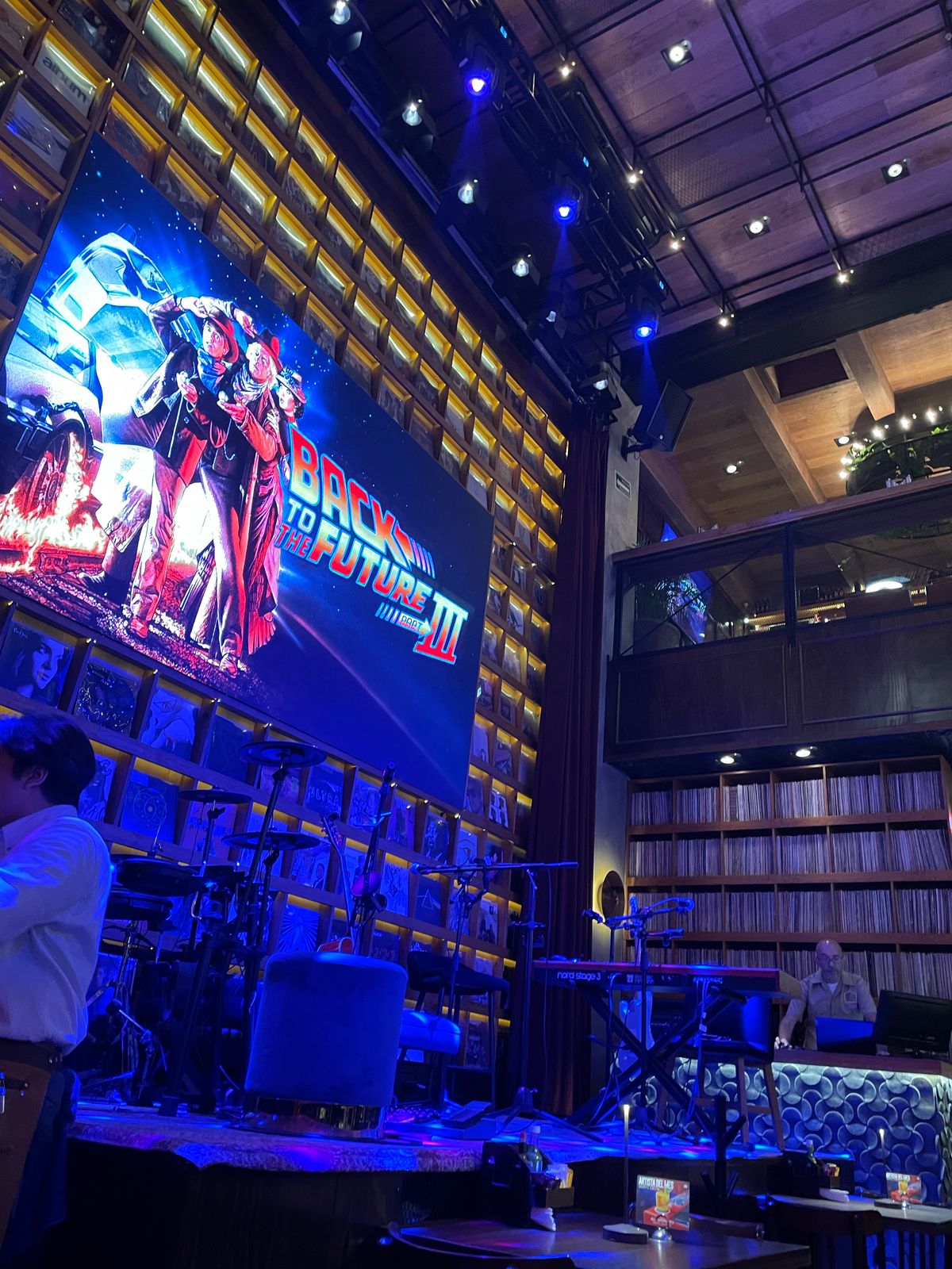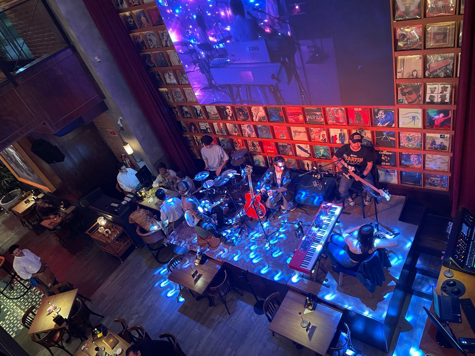 Por la noche, Cinema Stereo se transforma en un espacio vibrante donde lamúsica envivoy los cócteles son protagonistas.
