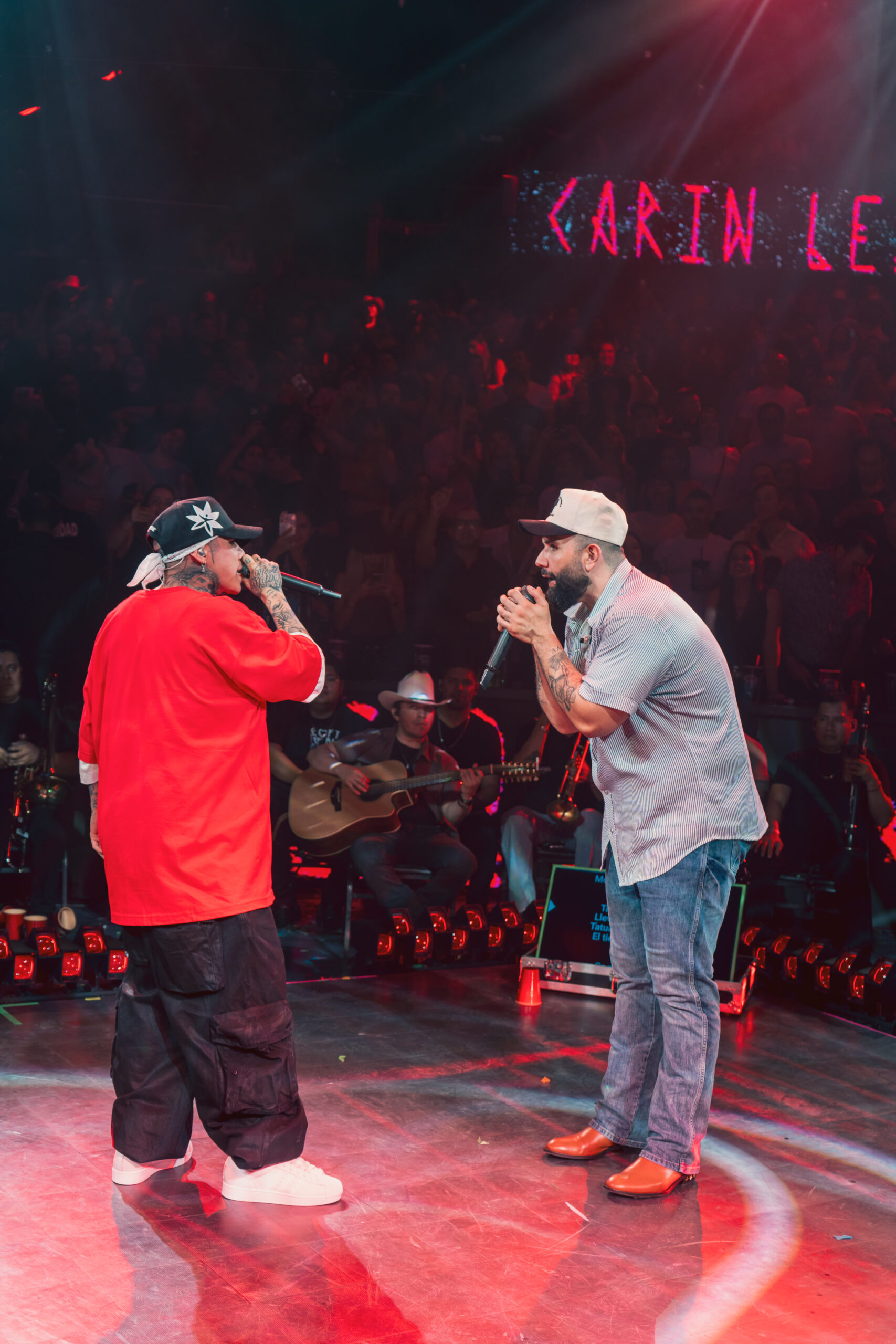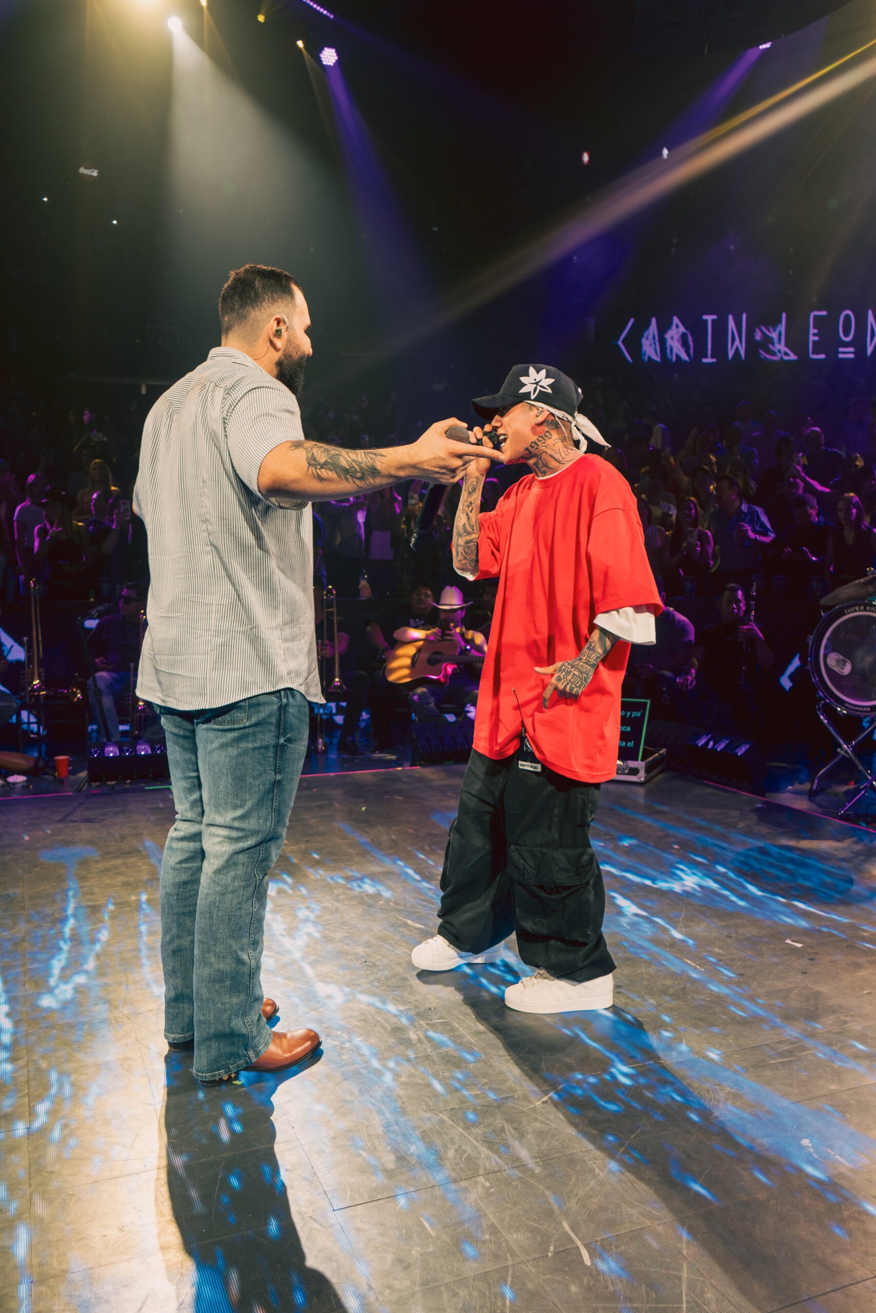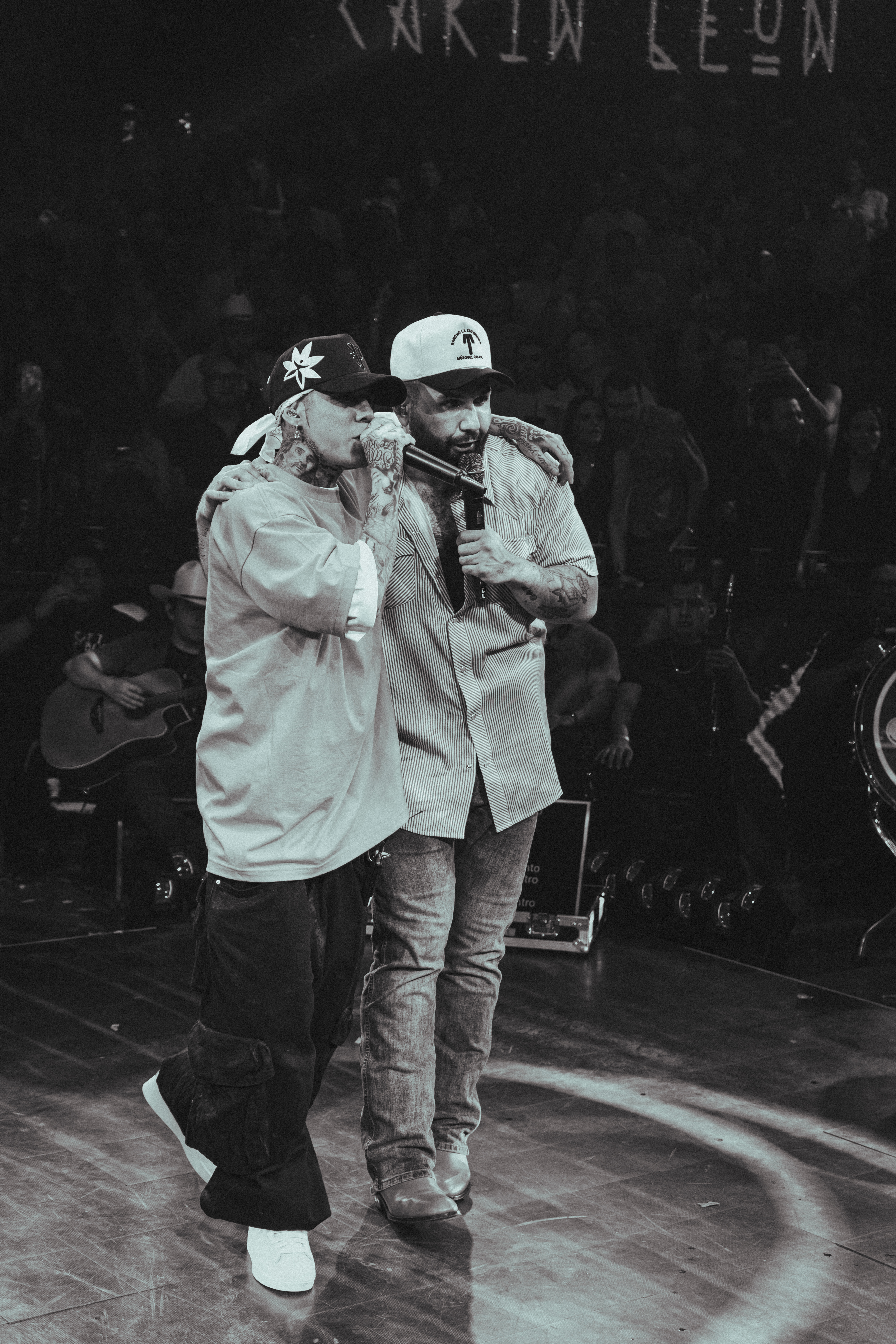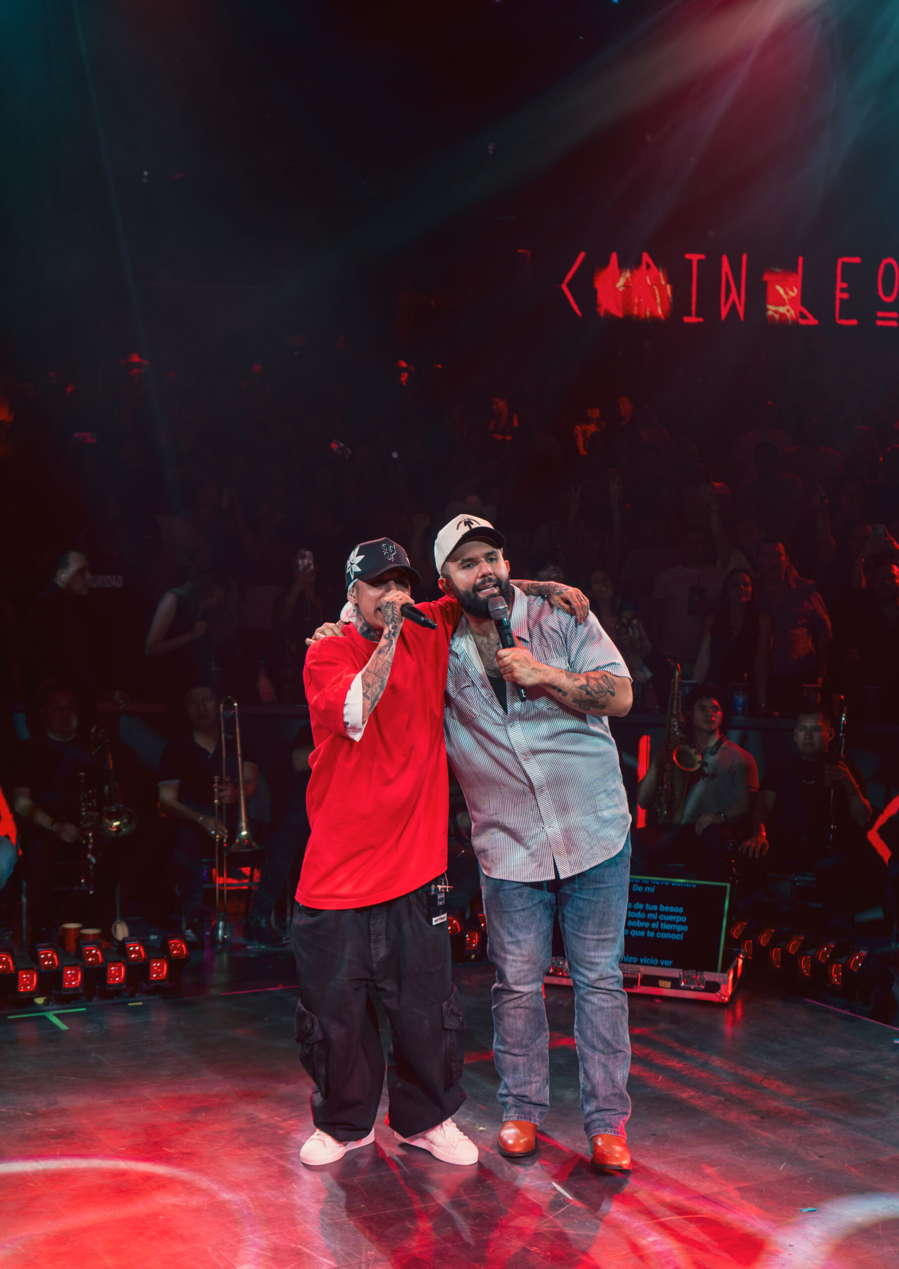 Sin previo aviso, el rapero guanajuatense subió al escenario para interpretar junto a Carin León dos temas que tocan el alma: “Los Caminos de la Vida” y “Tatuajes”, clásicos que resuenan profundo en la memoria colectiva de varias generaciones.